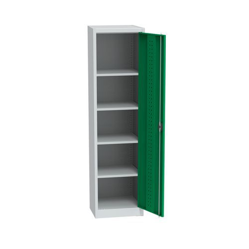 Fém műhelyszekrény, 4 polc, 195 x 50,5 x 50 cm, világosszürke/zöld |