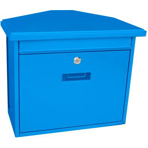 Falra szerelhető levélszekrény porszórtan horganyzott acélból, hengerzárral és kis névtábla tartóval felszerelve. A betétnyílás (32x2 cm) a fedlap mögött található. Hátul újságok számára kialakított résszel.