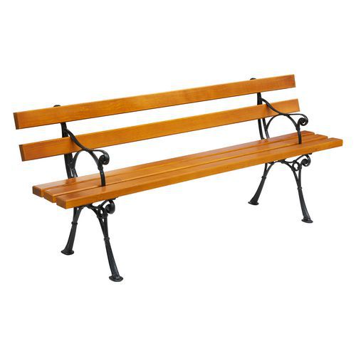Kültéri pad a számos szabadtéri felhasználásra, parkba vagy játszótérre.Lucfenyő léc ülőlappal.Több színváltozatban kapható.Dekoratív fekete lábakkal és karfával.