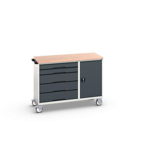 Karbantartó fiókos kocsi Bott Verso, 98 x 130 x 60 cm, 5 fiókos, szekrényes, multiplex, szürke-antracit |