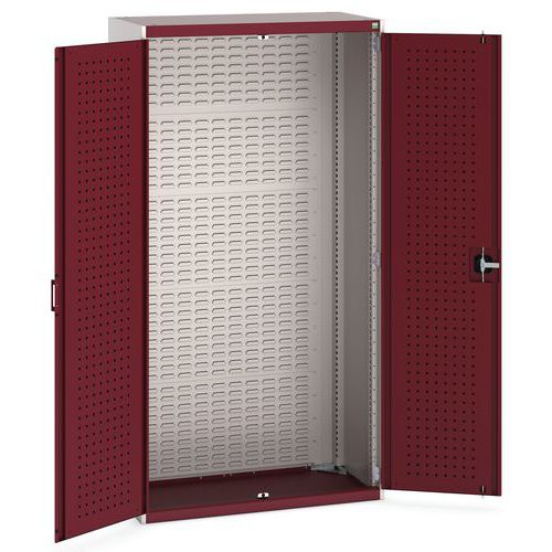 Műhelyszekrény perforált panelekkel doboz/szerszámtartókhoz, 120 x 105 x 65 cm, szürke-piros |