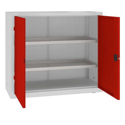Fém szekrény kádpolcokkal, 104 x 120 x 50 cm, szürke/piros |