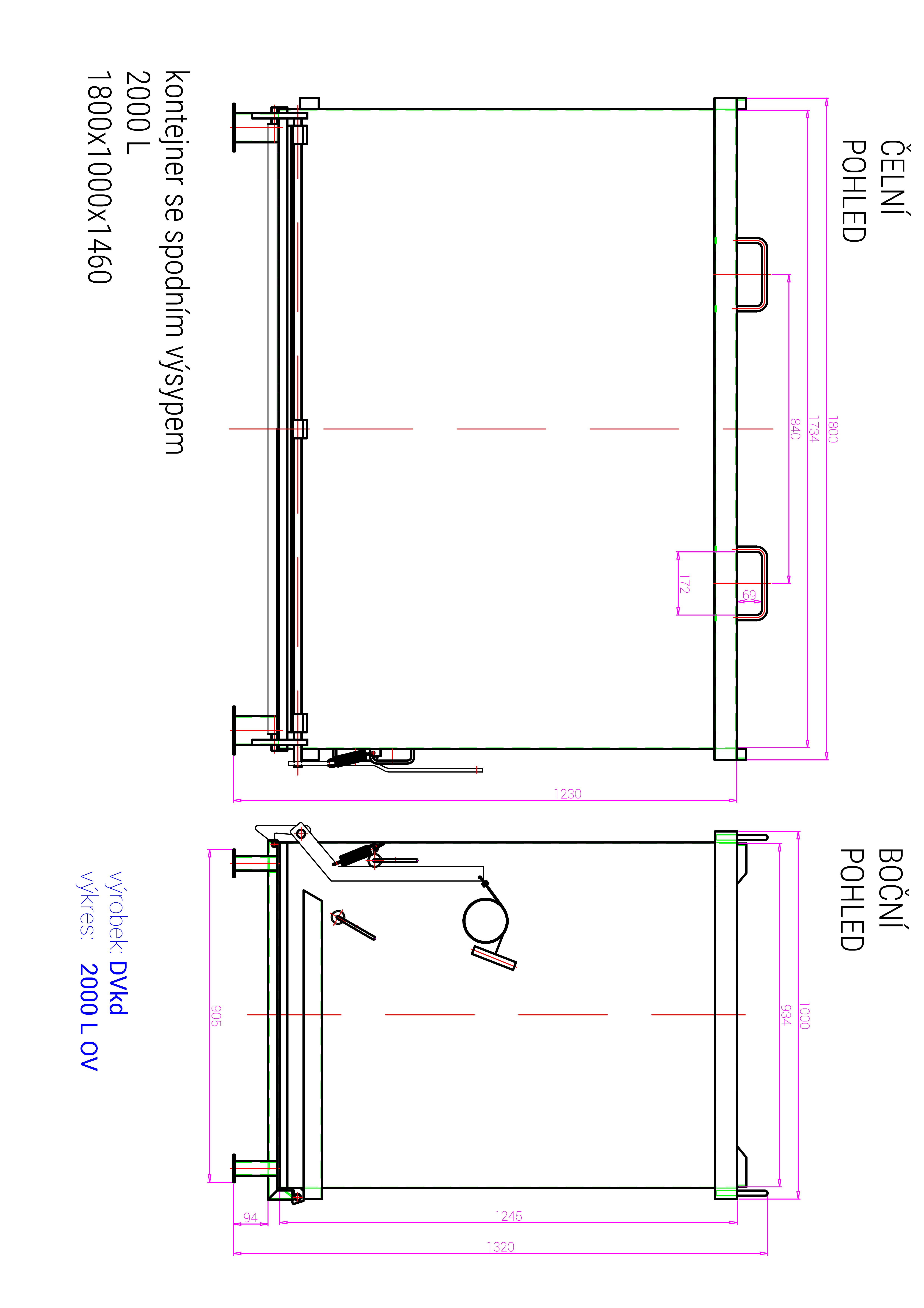Konténer billenthető fedéllel, 2000 l térfogat, piros |